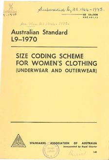 This Standard provides a scheme for designating the sizes of all ready-made garments for women shich should meet the needs of a very high proportion of Australian women. The scheme can also be used by the paper-pattern making industry for home dressmaking. The standard scheme is presented in the form of two charts. One chart gives average sizes to cover all garments other than fitted dresses and two-piece suits (which must fit both the upper and lower parts of the body in combination). The second chart provides for slim hip fittings and full hip fittings in combination with the bust measurement under the same size coding. In this chart only the bust and hip measurements are shown as the wast measurement is not considered critical.