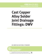 This Standard establishes specifications for cast copper alloy solder joint drainage fittings, designed for use in drains, waste, and vent (DWV) systems. These fittings are designed for use with seamless copper tube conforming to ASTM B 306, Copper Drainage Tube (DWV), as well as fittings intended to be assembled with soldering materials conforming to ASME B1.20.1. This Standard is allied with ASME B16.29, Wrought Copper and Wrought Copper Alloy Solder Joint Drainage Fittings – DWV. It provides requirements for fitting ends suitable for soldering. This Standard covers: (a) Description; (b) Pitch (slope); (c) Abbreviations for end connections; (d) Sizes, and methods for designing openings for reducing fittings; (e) Marking; (f) Material; and (g) Dimensions and tolerances.