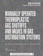 This Standard covers manually operated thermoplastic valves in nominal sizes 1.2 through 6 (as shown in Table 5). These valves are suitable for use below ground in thermoplastic distribution mains and service lines. The maximum pressure at which such distribution piping systems may be operated is in accordance with the Code of Federal Regulation (CFR) Title 49, Part 192, Transportation of Natural and Other Gas by Pipeline; Minimum Safety Standards, for temperatrure ranges of .20 deg. F to 100 deg. F (.29 deg. C to 38 deg. C). This Standard sets qualification requirements for each nominal valve size for each valve design as a necessary condition for demonstrating conformance to this Standard. This Standard sets requirements for newly manufactured valves for use in below ground piping systems for natural gas [includes synthetic natural gas (SNG)], and liquefied petroleum (LP) gases (distributed as a vapor, with or without the admixture of air) or mixtures thereof.