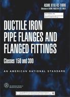 This Standard covers minimum requirements for Class 150 and 300 cast ductile iron pipe flanges and flanged fittings. The requirements covered are as follows: (a) pressure-temperature ratings (b) sizes and method of designating openings (c) marking (d) materials (e) dimensions and tolerances (f) bolts, nuts, and gaskets (g) tests Codes and Regulations. A flange or flanged fit- ting used under the jurisdiction of the ASME Boiler and Pressure Vessel Code, the ASME Code for pressure Piping, or governmental regulation is subject to any limitation of that code or re- gulation. This includes any maximum temperature limitation, any rule governing the use of a material at low temperature, or provisions for operation at a pressure exceeding the pressure- temperature ratings in this Standard.