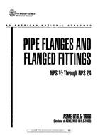 This Standard covers pressure-temperature ratings, materials, dimensions, tolerances, marking, testing, and methods of designating openings for pipe flanges and flanged fittings in sizes NPS 1/2 through NPS 24 and in rating Classes 150, 300, 400, 600, 900, 1500, and 2500. Flanges and flanged fittings may be cast, forged, or (for blind flanges and certain reducing flanges only) plate materials as listed in Table 1A. Requirements and recommendations regarding bolting and gaskets are also included.