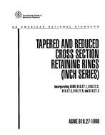 This Standard covers complete general and dimensionaldata for three series of general purpose taperedand reduced cross section retaining rings, which maybe used with the nominal size shafts and housingslisted and in grooves of the recommended dimensionslisted. Also included are formulas and tolerances onwhich dimensional data are based. Three appendicesinclude guidance for assembly and recommended standarddrawing formats.
