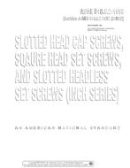 This standard is intended to cover the complete general and dimensional data for the various styles of slotted head cap screws and square head and slotted headless set screws. Also included are appendixes covering thread runout sleeve gages for cap screws, protrusion gaging of flat countersunk head cap screws; wrench openings for square head set screws, and formulas on on which dimensional data are based.