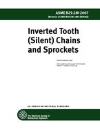 This Standard includes the following information for Inverted Tooth (Silent) Chains: (a) Nomenclature; (b) General configuration; (c) Numbering system; (d) Tolerance for chain length; (e) Measuring loads; (f) General chain dimensions for 3/8 in. pitch chain and larger; and (g) Chain widths and sprocket-face profiles for 3/8 in. and larger pitch chain and for 3/16 in. pitch chain. This Standard also includes the following information for sprockets: (a) Tooth form dimensions for 3/8 in. Pitch Chain and larger and for 3/16 in. pitch chain; (b) Diameters and measuring dimensions for 3/8 in. Pitch Chain and larger and for 3/16 in. Pitch Chain; (c) Tolerances for diameters, over pin dimensions and eccentricity for 3/8 in. and larger Pitch Chain and for 3/16 in. Pitch Chain; (d) Hub diameters for 3/8 in. Pitch Chain and larger; (e) Tabulation of pitch diameter, outside diameter, over pin dimensions and guide groove diameter for 3/8 in. Pitch Chain and larger and for 3/16 in. Pitch Chain. Also included is “Supplementary Information” which contains suggestions relative to the application and use of the chains covered by this Standard.