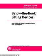 Volume B30.20 includes provisions that apply to the marking, construction, installation, inspection, testing, maintenance, and operation of below-the-hook lifting devices, other than slings, used for attaching loads to hoist. The devices are arranged in four chapters as follows: Chapter 20-1: Structural and Mechanical Lifting Devices. Chapter 20-2: Vacuum Lifting Devices. Chapter 20-3: Operated Close Proximity Lifting Magnets. Chapter 20-4: Remotely Operated Lifting Magnets.