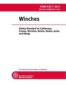 B30.7 includes provisions that apply to the construction, installation, operation, inspection, testing and maintenance of winches arranged for mounting on a foundation or other supporting structure for moving loads. Winches addressed in this volume are those typically used in industrial, construction and maritime applications. The requirements included in this volume apply to winches that are powered by internal combustion engines, electric motors, compressed air or hydraulics and that utilize drums and rope.
