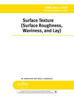This Standard is concerned with the geometric irregularities of surfaces. It defines surface texture and its constituents: roughness, waviness, and lay. It also defines parameters for specifying surface texture. The terms and ratings in this Standard relate to surfaces produced by such means as abrading, casting, coating, cutting, etching, plastic deformation, sintering, wear, erosion, etc.