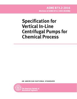 This Standard is a design and specification standardthat covers metallic centrifugal pumps of vertical shaftsingle-stage design with suction and discharge nozzlesin-line. This Standard includes dimensional interchangeabilityrequirements and certain design featuresto facilitate installation and maintenance and enhancereliability and safety of B73.2 pumps. It is the intent ofthis Standard that pumps of the same standard dimensiondesignation from all sources of supply shall beinterchangeable with respect to mounting dimensions,size, and location of suction and discharge nozzles (seeTable 1). Maintenance and operation requirements arenot included in this Standard.