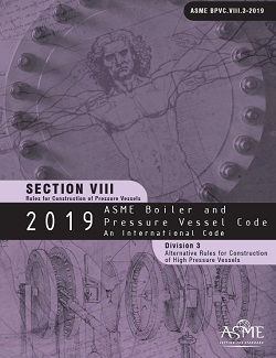 BPVC-VIII-3-2019 provides requirements applicable to the design, fabrication, inspection, testing, and certification of pressure vessels operating at either internal or external pressures generally above 10,000 psi. Such vessels may be fired or unfired. This pressure may be obtained from an external source, a process reaction, by the application of heat from a direct or indirect source, or any combination thereof. Division 3 rules cover vessels intended for a specific service and installed in a fixed location or relocated from work site to work site between pressurizations. The operation and maintenance control is retained during the useful life of the vessel by the user who prepares or causes to be prepared the design specifications. Division 3 does not establish maximum pressure limits for either Section VIII, Divisions 1 or 2, nor minimum pressure limits for this Division. Rules pertaining to the use of the UV3 Code symbol stamps are also included.