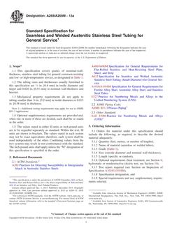 Standard Specification for Seamless and Welded Austenitic Stainless Steel Tubing for General Service