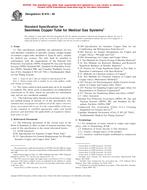 1.1 This specification establishes the requirements for two wall thickness schedules of specially cleaned, straight lengths of seamless copper tube, identified as Types K and L, suitable for medical gas systems. The tube shall be installed in conformance with the requirements of the National Fire Protection Association (NFPA) Standard 99, Gas and Vacuum Systems (NFPA) Standard 99C, Standard for Hypobaric Facilities (NFPA) Standard 99B, and Canadian Standards Association (CSA) Standard Z 305.1/Z 7396.1, Nonflammable Medical Gas Piping Systems.