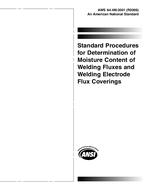AWS A4.4M:2001(R2016) establishes standard procedures for determination of moisture content of welding fluxes and welding electrode coverings. The test involves combustion of a sample in an oxygen carrier gas at elevated temperature. Any water evolved from the sample or formed by the combustion process is measured by means of either Karl Fischer titration or infrared detection. The key differences between these methods and traditional thermo gravimetric techniques are the inclusion of instrument calibration procedures, system verification checks and use of more accurate analytical techniques for water detection.