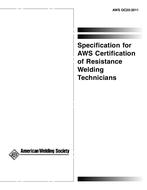 This specification defines the certification program of the American Welding Society for use in the Certification of Resistance Welding Technicians (CRWTs). These certifications require documentation of experience, and satisfactory completion of a written examination. The examination tests the CRWT’s knowledge of welding processes, welding procedures, destructive and nondestructive tests, welding terms, definitions, symbols, reports, safety, quality assurance and responsibilities, machine setup, and other related subjects. Successful completion of all requirements constitutes the basis for awarding a certification as a Resistance Welding Technician.