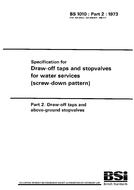 Dimensions, test requirements for screw-down pattern draw-off taps and above-ground stopvalves 3/16 in to 2 in nominal sizes. Material (mainly metal), design, dimensions of components and union ends.