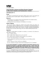 This method is for determining the total inorganic chloride content of fresh or spent alumina and silica-alumina catalysts or catalyst supports. The range of quantitation is 0.01 to 10 mass-%.