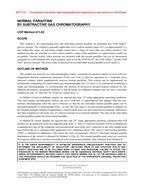 This method is for determining total and individual normal paraffins in desorbent free UOP Molex process streams. The method is generally applicable over a carbon number range of C6 to approximately C30 but, within this range, an individual sample cannot have a range of more than ten carbon numbers. The method can also be extended to wider carbon number ranges when qualitative or approximate results are acceptable. Normal olefins, when present, are included with the normal paraffins but can be determined separately by UOP Method 688, when required, such as for the UOP Pacol, the UOP Define and the UOP Olex process streams. The lower limit of detection for an individual normal paraffin is 0.05 mass-%.