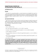 This method is for estimating the paraffin wax content of petroleum oils and asphalts. Wax content is an empirical value dependent upon the conditions under which the wax is separated from the original material. In this method paraffin wax content is defined as the mass-percent of material precipitated when a solution of asphalt-free sample in methylene chloride is cooled to -30 C. The lower limit of detection is 5 mass-percent.