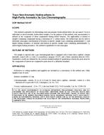 This method is primarily for determining total non-aromatic hydrocarbons below the one mass-% level in individual or mixed aromatic hydrocarbon samples. For the purpose of this method, total non-aromatics is defined as the composite of those components eluting before benzene. The applicability is limited to samples containing compounds having a maximum of 11 carbon atoms. The method may also be used to determine mass-ppm concentrations of benzene in specific sample types containing predominantly C7 and higher boiling aromatics, or benzene and toluene in specific sample types containing predominantly C8 and/or higher boiling aromatics. The method is quantitative to one mass-ppm.
