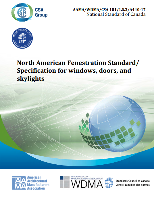 This is the fourth edition of AAMA/WDMA/CSA 101/I.S.2/A440 ? North American Fenestration Standard/Specification for windows, doors, and skylights. It supersedes the previous edition published in 2011 under the same title. It is jointly published and maintained by the American Architectural Manufacturers Association (AAMA), the Window & Door Manufacturers Association (WDMA), and CSA Group.