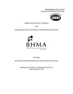 1.2 Doors that require higher speeds, forces, shorter time delays, and activating sensing devices shall comply with ANSI/BHMA A156.10 for Power Operated Pedestrian Doors and are not covered in A156.19.